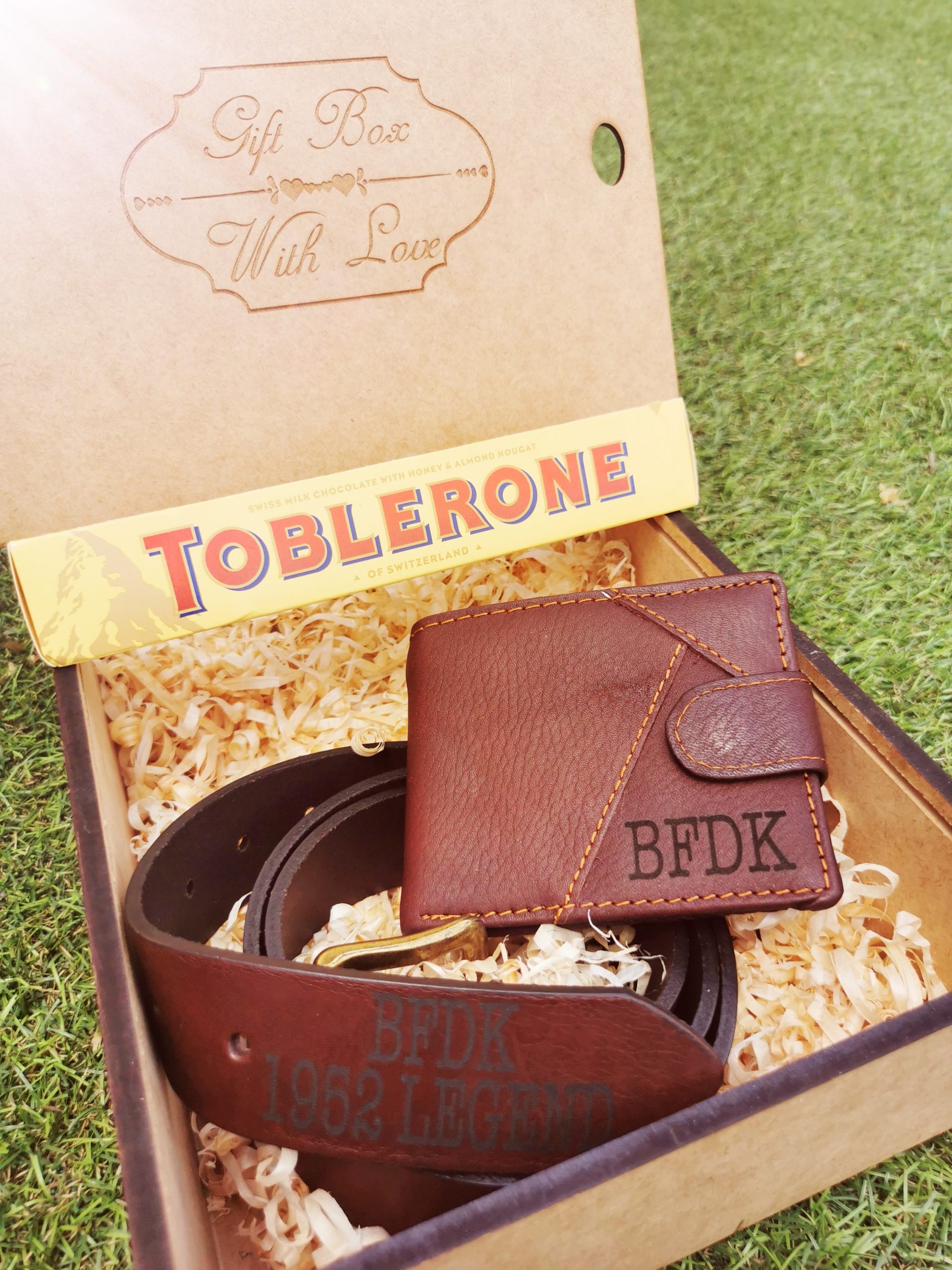 Personalized Wallet, Belt and Toblerone Gift Box Includes: