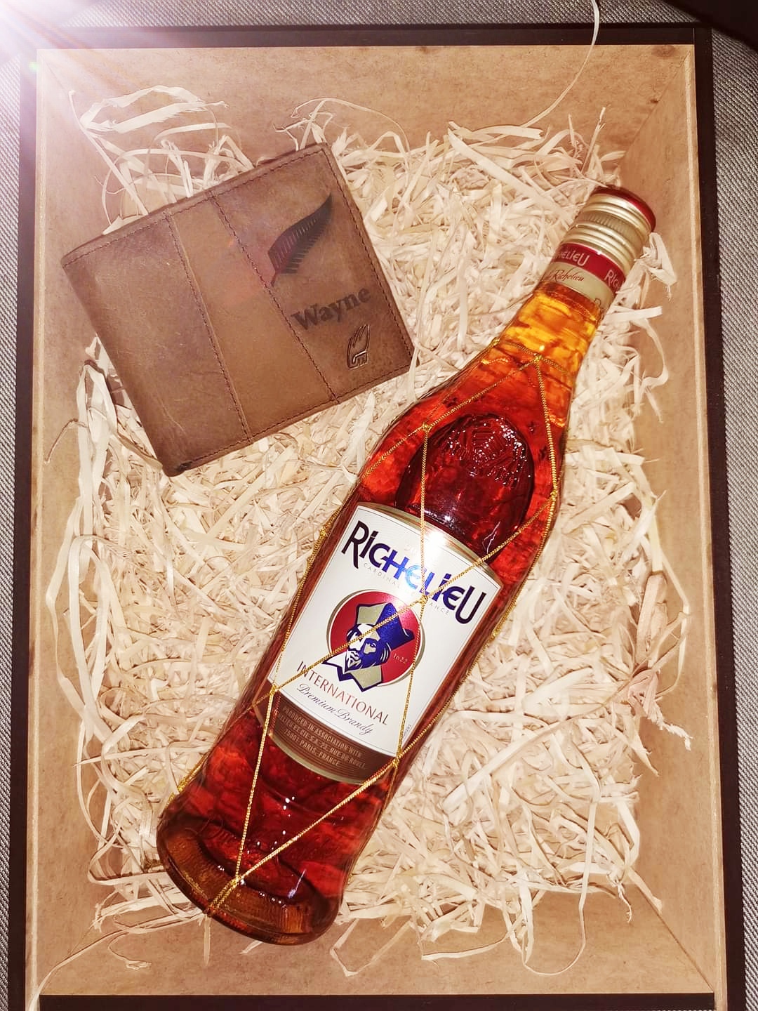 1x Genuine Leather wallet with name engrave in front and message engrave inside or at the back